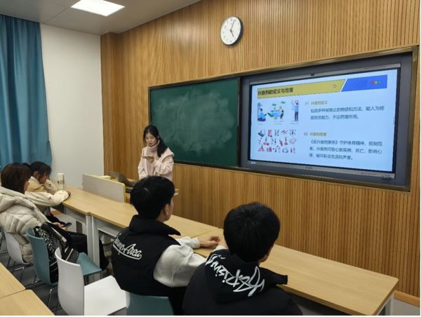 首先,法学院的团支书蔡一诺同学以生动的案例和深入浅出的讲解方式,阐述了体育领域中诸多常见的法律问题,如运动员兴奋剂条例、运动权益保护、体育法律意识培养等,运训同学们深刻认识到法律在体育领域的重要性,也增强了自身的法律意识和风险防范能力。
