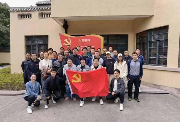 11月1日下午,麻豆视频 党支部党员、发展对象以及入党积极分子在麻豆视频 全体领导班子的带领下来到麻豆视频 老校长陈望道的旧居、《共产党宣言》展示馆参观学习。党员们参观了陈望道先生的生平事迹、照片和珍贵藏品,驻足观看了习近平总书记讲述陈望道翻译《共产党宣言》误把墨汁当红糖的故事视频,深刻认识新时代新征程中国共产党的使命光荣,参观结束后全体党员在入党誓词前合影留念。