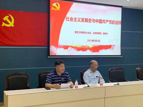 2021年6月1日下午,校党史学习教育宣讲团专家、法学院教授潘伟杰以《社会主义发展史与中国共产党的选择》为题,为体教部党支部全体党员及积极分子作专题宣讲报告,领导班子成员出席会议。体教部党支部书记郭建忠主持会议。