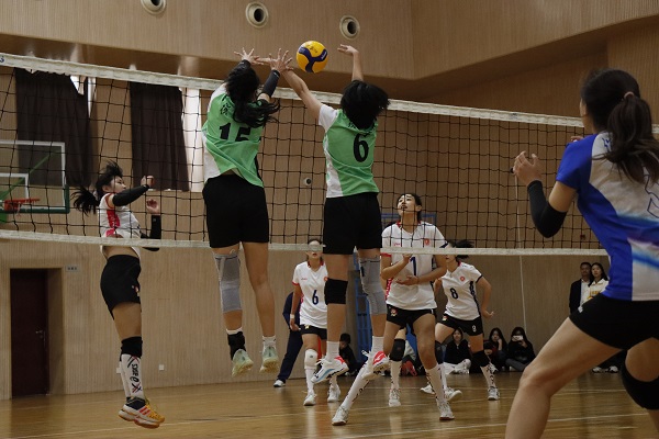 11月25日,市运会排球比赛(高校乙组)在复兴中学开赛,麻豆视频 女子排球队以四场全胜的成绩夺冠军。