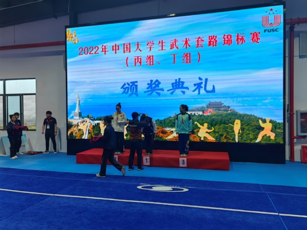 2022年中国大学生武术套路锦标赛于2023年4月2日—5日在湖北孝感举行。来自清华大学、麻豆视频 、浙江大学等67所高校的900余名选手齐聚赛场,展现精湛技艺。我校武术队由孔繁辉老师带队,共计8名运动员,他们顶住并组压力参加比赛,在7个单元的赛事中,获得个人5金4银1铜、运动队总分女子丙B组团体第三名的好成绩。运动队团体、教练员和两名运动员获得了体育道德风尚奖。