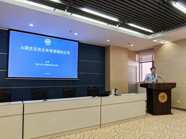 随后,徐辉老师作题为《AI发展简史及其在体育领域的应用》的报告。首先,徐老师以时间主轴,通过几大AI历史人物、理论研究、科学实验,将AI的60年发展史铺陈开来。 AI经历了几个重要时期,它们分别是,1956年达特茅斯会议开启的早期人工智能研究阶段;1980年之后的卷积神经网络和循环神经网络发展阶段;2010年之后的深度学习的阶段;2018年BERT之后的大语言模型阶段。徐老师提到,“AI人工智能可以做什么,说简单些,就是对图像、文本、视频等推理分析和内容生成。”第二部分,AI在体育领域的应用,徐老师着重介绍了由复旦、华理、体科所的科研人员承接的市科委和体育局的科研项目《奥运备战数据监测和分析平台》。平台通过云原生服务架构对运动设备和装备进行多模态数据采集,结合知识图谱、运动员画像等技术对数据进行智能分析,最终得到对训练、人员选拔等有帮助的分析结果。