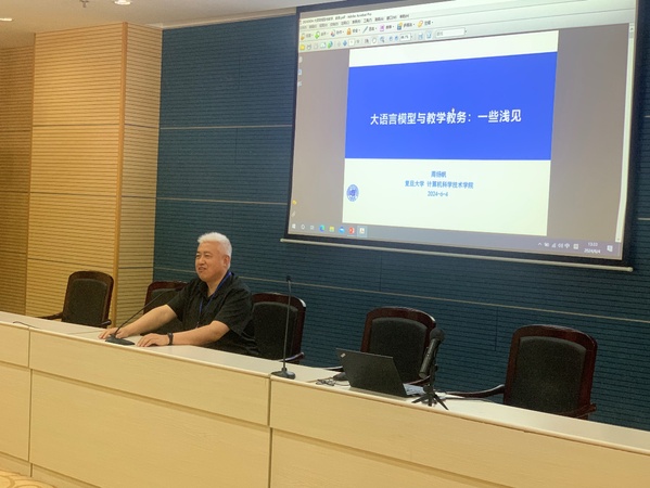 接着,周扬帆教授以“大语言模型与教学教务”为题作了人工智能的科普介绍并讨论了它对大学教学、教务的影响。周老师从简单的例子开始,浅显易懂地介绍了人工智能背后的统计学原理,并引出了以ChatGPT为代表的大语言模型的基本原理。接着,他介绍了在教务工作中如何应用大语言模型来协助学生选择专业和课程等,也讨论了大语言模型如何在教学过程中帮助老师、学生更好完成教学目标;通过分析大语言模型给教学工作带来的新挑战,分享了应对这些挑战的思路。周老师认为,大语言模型对教学、教务有非常积极的作用,有必要鼓励大语言模型的使用,使之更好地服务于教学、教务工作。“我们要拥抱人工智能时代的到来,就像几十年前我们拥抱计算机时代的到来一样。”
