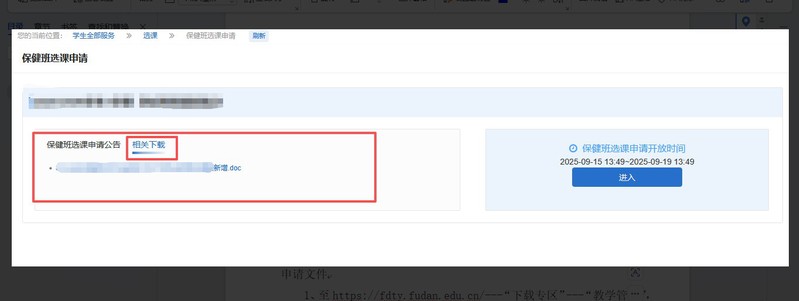 1、“相关下载”下载“传统体育养生课程选课申请表”,