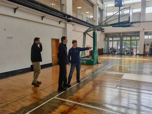 上午9点,在北区体育馆调研组一行重点勘察了篮球场、排球场、乒乓房和健身房的教学训练场地并进行了深入交流,北区体育馆作为教学和体育活动重要场所,承担着羽毛球、乒乓球、篮球、武术等体育课程,同时是复旦女排球训练和群众体育比赛活动的重要场馆,因年久未进行大修而掣肘着师生体育活动更好的开展,通过实地调研基建部门将进一步细化改造方案,为改造修缮做好前期准备工作。